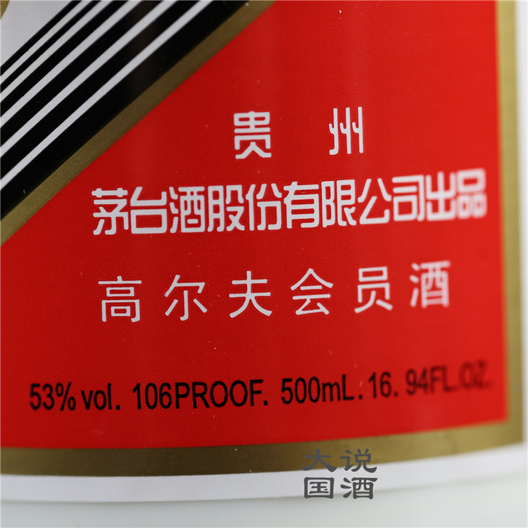 - 生产许可证编号: QS520015010001产品标准号: GB/T18356厂名: 贵州茅台酒股份有限公司厂址: 贵州省仁怀市茅台镇;仁怀市二合镇玉屏社区;习水县习酒镇黄金坪村厂家联系方式: 400-818-9999配料表: 高粱、小麦、水储藏方法: 阴凉、干燥、密封保存保质期: 999999食品添加剂: 无体积(ml): 500品牌: 贵州茅台酒品名: 高尔夫会员酒是否为有机食品: 否产地: 中国大陆地区省份: 贵州香型: 酱香型酒精纯度: 高度白酒(50%以上)适用场景: 商务宴请区配送频次: 1周2次包装方式: 包装包装种类: 礼盒装净含量: 500ml度数: 53%vol.
