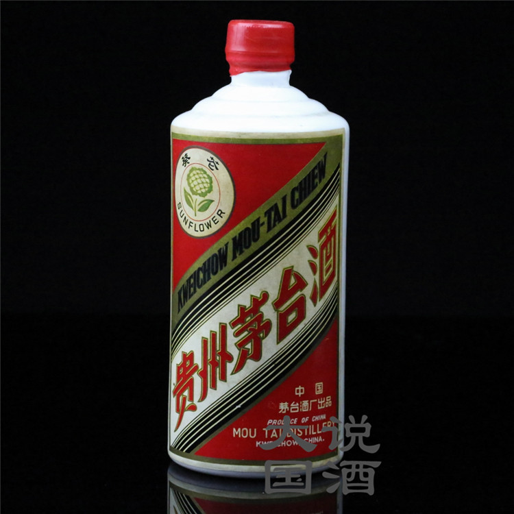 (1967年4月21日革命群众组织“夺权”,10月成立“贵州省茅台酒厂革命委员会”。以往出口的飞天茅台(又名飞仙)被扣上四旧的帽子,已经生产的飞天茅台被压在海关未被出口,经讨论 1968初出口飞天商标改为”大叶向阳图案葵花牌商标。