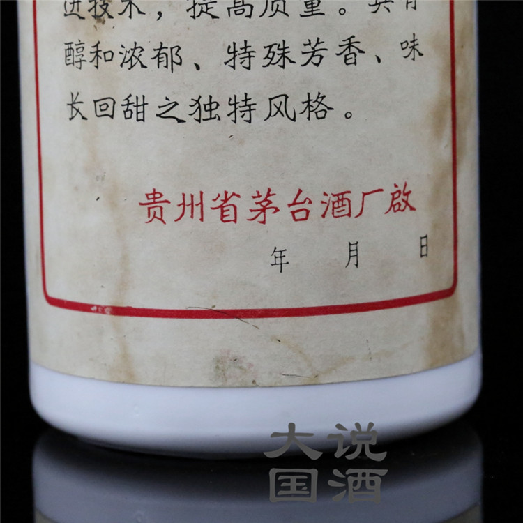 1963年5月7日,毛泽东在中央政治局杭州会议上提出开展“阶级斗争、生产斗争和科学实验这三大革命运动”。 1966年,茅台酒厂更换了茅台酒瓶的背标,这种酒标一直用到1982年,贴在内销和特需的茅台酒瓶上,时代感极强。