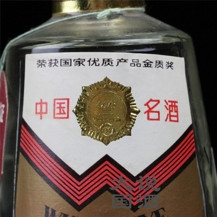 1981-1986年注册商标为交杯牌,1985年开始注册商标优质牌,1985年两种牌子同时存在,1986年以后只有优质牌。1990年之前外销五粮液即为麦穗瓶,此瓶当时出口五粮液。