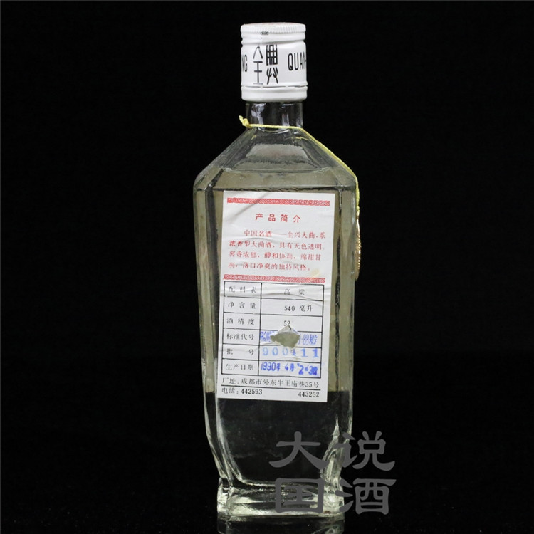 方瓶铁盖全兴大曲酒(年代:1990)