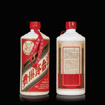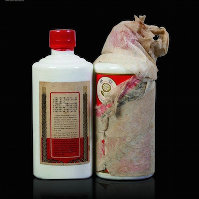 文革”时期外销的“葵花牌”茅台酒都是乳白玻璃瓶,红色螺旋式瓶盖,外包红色胶帽。