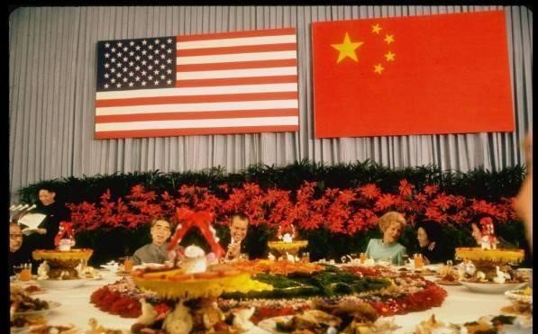 事实上,在还没有抵达北京之前,这位总统就和助理们在“空军一号”上阅读厚厚的文件与资料,商讨如何与中国人在餐桌上打交道。美国人被告知,也许中方会招待他们鱼翅、燕窝、海参、蛇或其他他们从没见过的食物。