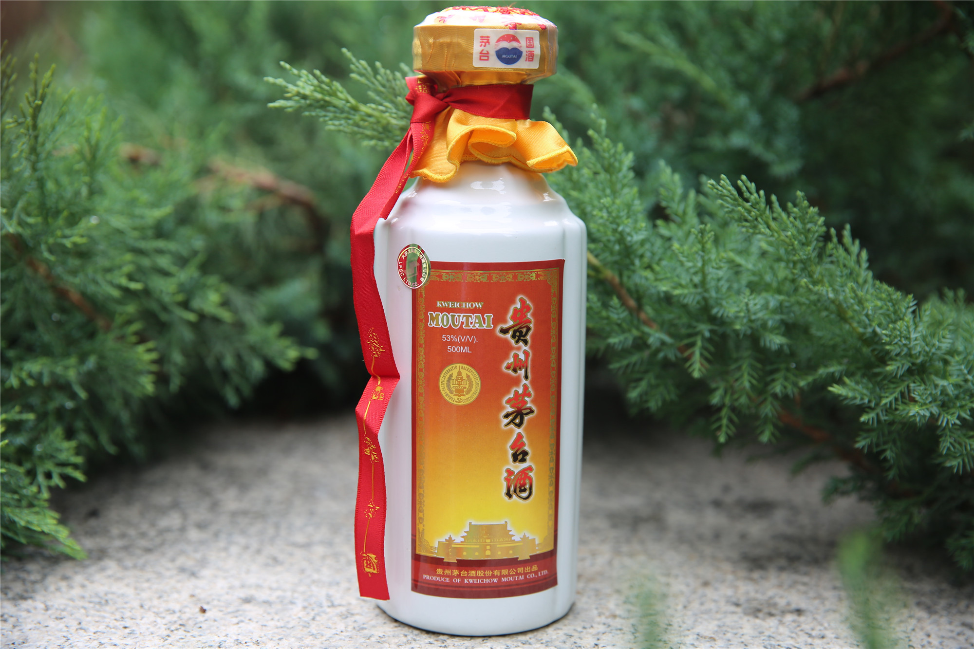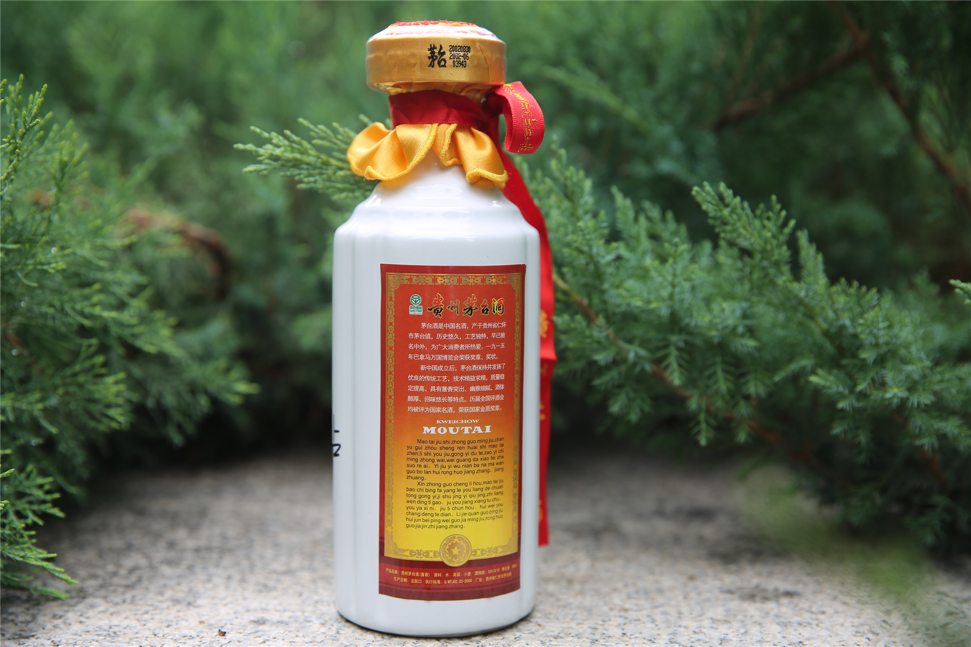 产于贵州省仁怀市茅台镇,原料为当地出产的有机高粱和小麦。 是世界著名三大蒸馏名酒之一,其酿造工艺列入中国首批非物质文化遗产名录,誉称“国酒”,是绿色食品、有机食品、地理标志保护产品。 贵州茅台酒从投料生产到产品出厂至少需要五年时间(基酒生产一年、分类贮存三年、勾兑成品存放一年)。 严格按照节气,端午踩曲、重阳投料、一年一个生产周期;两次投料;三种(酱香、窖底香、纯甜香)香型体; 同一批原料要经过九次蒸煮、八次加曲、堆积发酵、七次取酒;高温制曲、高温堆积、高温入池、高温接酒、低糖化制曲、低水分入池、低出酒率、低酒精度;用曲量大、粮食消耗高;不准外加任何香味物质。 具有酱香突出、幽雅细腻、酒体醇厚、回味悠长、空杯留香持久的酒体风格。 这款豪华装茅台酒是礼盒装,金色,出厂价比普通茅台酒高。