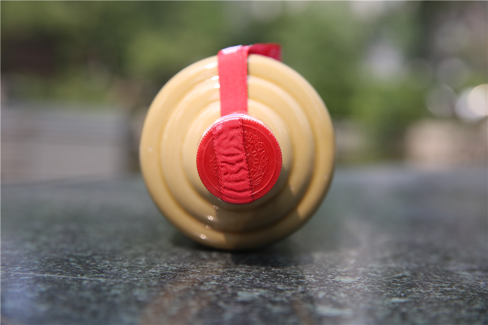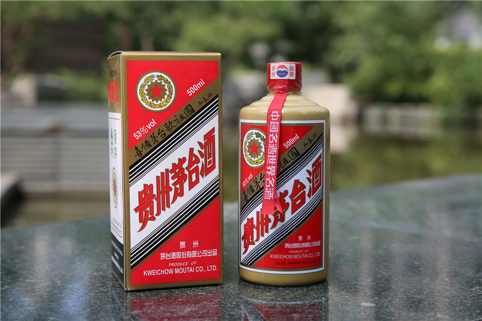 这款马万祺茅台酒是五星标志,采用经典的酱色瓷瓶。瓶身正面除了照常的“贵州茅台酒”五个字意外,还斜印有“喜备茅台歌祖国”和马万祺的签名。瓶身的背面是大红的背景,同样是这七个字竖排着,后面有题字的时间日期和马先生的印章。