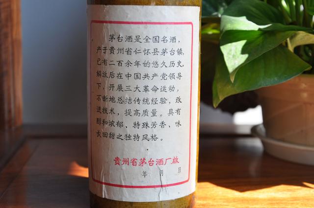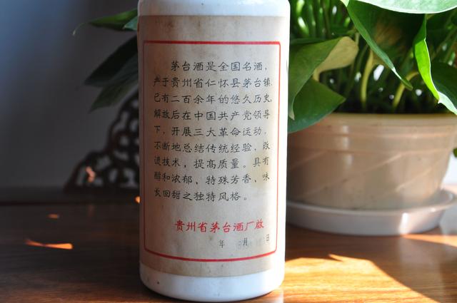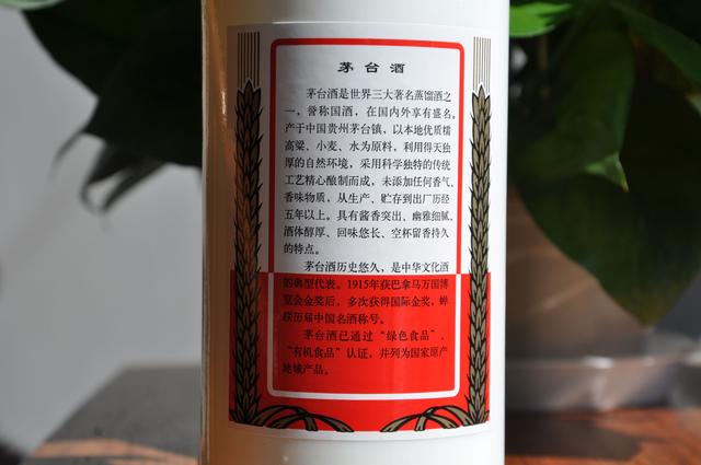 以此为基础,不但对其内在品质,而且对外在包装质量等方方面面,我们都提出更高的要求。必须从原材料开始,每一个环节都确保无公害、无污染、无毒,坚持不懈地、严格地向国际环保食品的标准看齐。如今,茅台集团已通过了有机食品认证和ISO14001环境管理体系认证。 如今市场中,“五星”和“飞天”两种贵州茅台酒的商标共存, “五星”为茅台集团有自主知识产权的商标,而“飞天”商标权属贵州省粮油进出口公司——茅台酒海外贸易台作伙伴,正是它让茅台酒在50年前走出国门。如 今,茅台酒两种商标的同存,更多的是考虑到茅台酒历史文化的传承和传播,两标之酒,品质当属一致。在背标上,1965年前的生产日期格式为中文排列,如:“一九五五年十月八日、一九六〇年五月八日、一九六四年一月廿一日”。1966年,文化大革命开 始。这个时候的贵州茅台酒还是用棉纸包瓶,正面印有红色“贵州茅台酒”字样以及生产日期。1967年以后,外销茅台酒统一改为乳白色玻璃瓶和红色塑料螺旋 盖,并出现彩盒包装贴“陈年茅台酒”的外销茅台酒。这段时间的内销茅台酒背标出现“三大革命”字样,外包棉纸上无外销茅台酒上所印的“中国贵州茅台酒”红 色繁体字。外销茅台酒的生产日期格式为阿拉伯文数字和中文排列,如“1966 5 1、1966 7 9、1967 6 17”。此段时期内销茅台酒的生产日期格式为阿拉伯文数字和中文排列,如“l968年7月2日”。1969年至l976年内外销茅台酒的生产日期格式为中 文排列,如“一九六九年十月八日、一九七〇年五月十一日、一九七六年一月廿三日”。l973年以后“飞天”牌商标恢复使用,约有25万张印成未付使用而封 存的“葵花牌”标签,于1978年经上级批准用于内销茅台酒上,即“三大革命葵花”,亦称“葵花”,除酒标正面与外销相同外,背贴仍为内销印有“三大革 命”字样的茅台酒简介标贴。此时期“飞天”牌茅台酒增加盒装,l975年部分时段包装中还出现了包棉纸与外盒同存的产品。1977年前的内销茅台酒背标 “三大革命”字体较以后略粗,瓶体肩部稍矮,酒脖略长,l977年至l980年常用的生产日期格式为阿拉伯文和中文排列,如“1977年10月5日、 l978年5月16日、