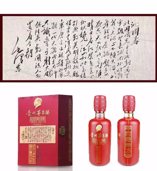 在毛泽东诞辰120周年之际,贵州茅台酒股份有限公司特限量推出毛泽东诗词珍藏版贵州茅台酒,此款纪念酒首次将伟人形象、毛泽东诗词、毛泽东印章等众多经典元素融为一体,成为融汇了中国红色文化、中国书法、经典诗歌、篆刻艺术、中国汉字文化等中国传统文化物质元素的艺术载体,旨在缅怀伟人风采,展现光辉足迹;在回顾伟人光辉历程的同时,传承伟人精神、品味红色文化、铸就中国梦想。