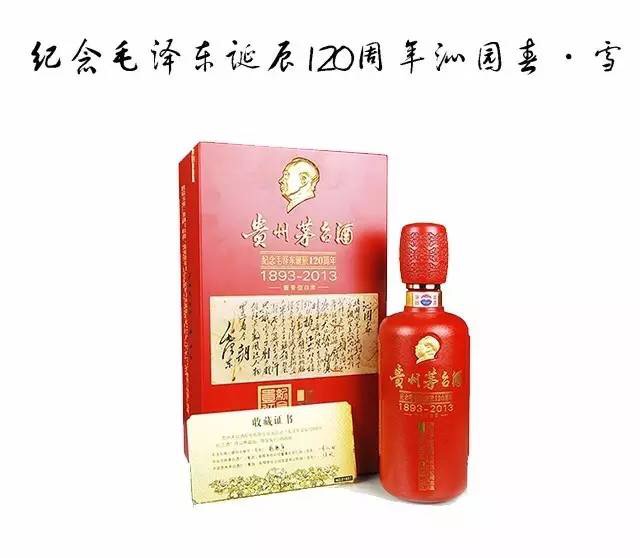2013年,国家首次特批贵州省委、茅台集团、毛氏家族共同启动“纪念开国领袖诞辰120周年暨主席茅台纪念酒“重大工程,首次力邀世界级酒类设计师徐燎原设计包装,毛主席嫡孙毛新宇少将、茅台集团董事长袁仁国、茅台集团党委书记陈敏联袂亲笔签名,红色国刊《红旗》杂志鼎力协办,堪称史上最高规格的“茅台纪念酒之王”!